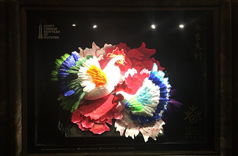 凱斯勒介紹,1月26日至27日連續兩晚,以“環球慶典”為主題,帝國大廈塔頂為慶祝中國新年再次點亮紅金兩色的吉祥彩燈。與此同時大廈一層將舉辦為期一個月的“歡樂春節”雞年生肖櫥窗展,主題為“錦雞報曉”、“大吉大利”和“金雞納?!保Mo大家送上中國人民的新春祝福。