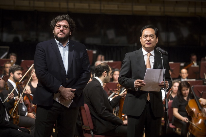 3月22日,慶祝中國-阿根廷建交45周年音樂會在位于布宜諾斯艾利斯的基什內(nèi)爾文化中心(阿國家文化中心)舉行。中國駐阿根廷大使楊萬明與阿阿根廷文化部部長巴勃羅·阿維魯托出席并致辭。多名阿政府高級官員、企業(yè)界和文化界知名人士以及外國駐阿使節(jié)觀看了演出。
