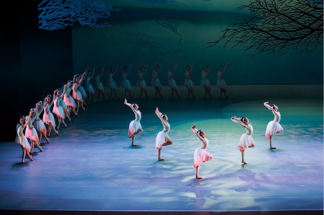 男女主人公的雙人舞造型無不具有戲曲優美程式的因素,絕不是西方經典的王子(美男)與公主(美女)雙人舞的簡單復制。在他們的雙人舞中,相向進退的設計,既體現了朱鹮“高蹈派”的自然屬性,又表現了他們和諧的甜蜜。這仿佛是信手拈來,其實是從生活中的煉制提取,真正做到了用舞蹈家的頭腦去支配雙腿。還是諾維爾說的,“舞劇同一幅好畫很相似,也許它本身就是一幅圖畫”。