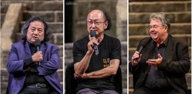 隨著轉(zhuǎn)臺旋轉(zhuǎn),主創(chuàng)們登臺亮相。在記者們的提問中,主創(chuàng)們興奮地分享了《馬可·波羅》的創(chuàng)作難點(diǎn)與亮點(diǎn)。作曲家恩約特·施耐德表示:“中文的發(fā)音和語言是一個挑戰(zhàn),所以我想辦法去翻譯所有的臺詞,我把臺詞錄進(jìn)錄音帶里,一字一句地、一夜一夜地去聽這些錄音。從這些中文的詞里尋找歐洲的旋律。”編劇韋錦現(xiàn)場還給大家“劇透”了女主角的名字其實(shí)是有深意的,傳有“傳說”的意思,云也有“說”的意思,“傳云”也就是“傳說”。