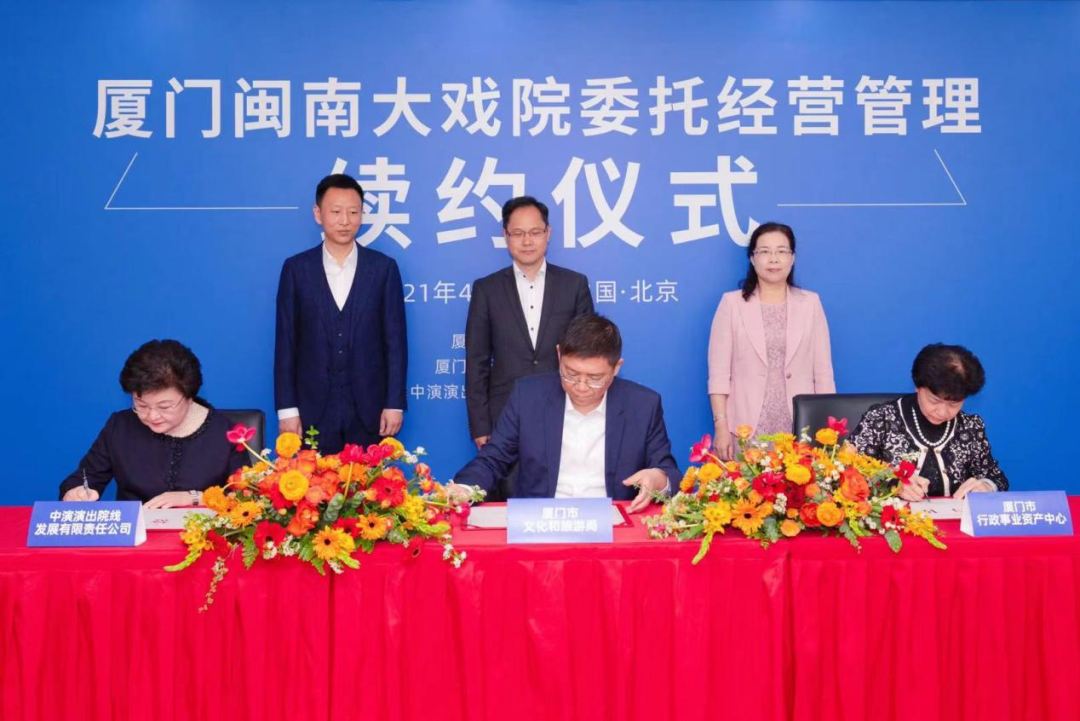 廈門市文化和旅游局局長、黨組書記張權,廈門市行政事業資產中心主任、一級調研員、支部書記林少煌,中國對外文化集團有限公司董事、副總經理秦文煥代表進行簽約。