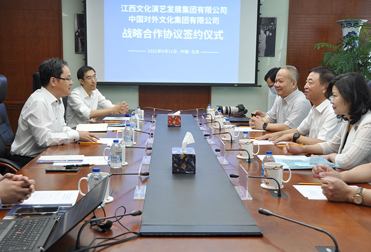 6月11日上午,中國對外文化集團與江西文化演藝發展集團在北京成功簽署戰略合作協議。中國對外文化集團黨委書記、董事長李金生,江西文演集團黨委書記、董事長李曉浩出席并作為雙方簽約代表簽約。