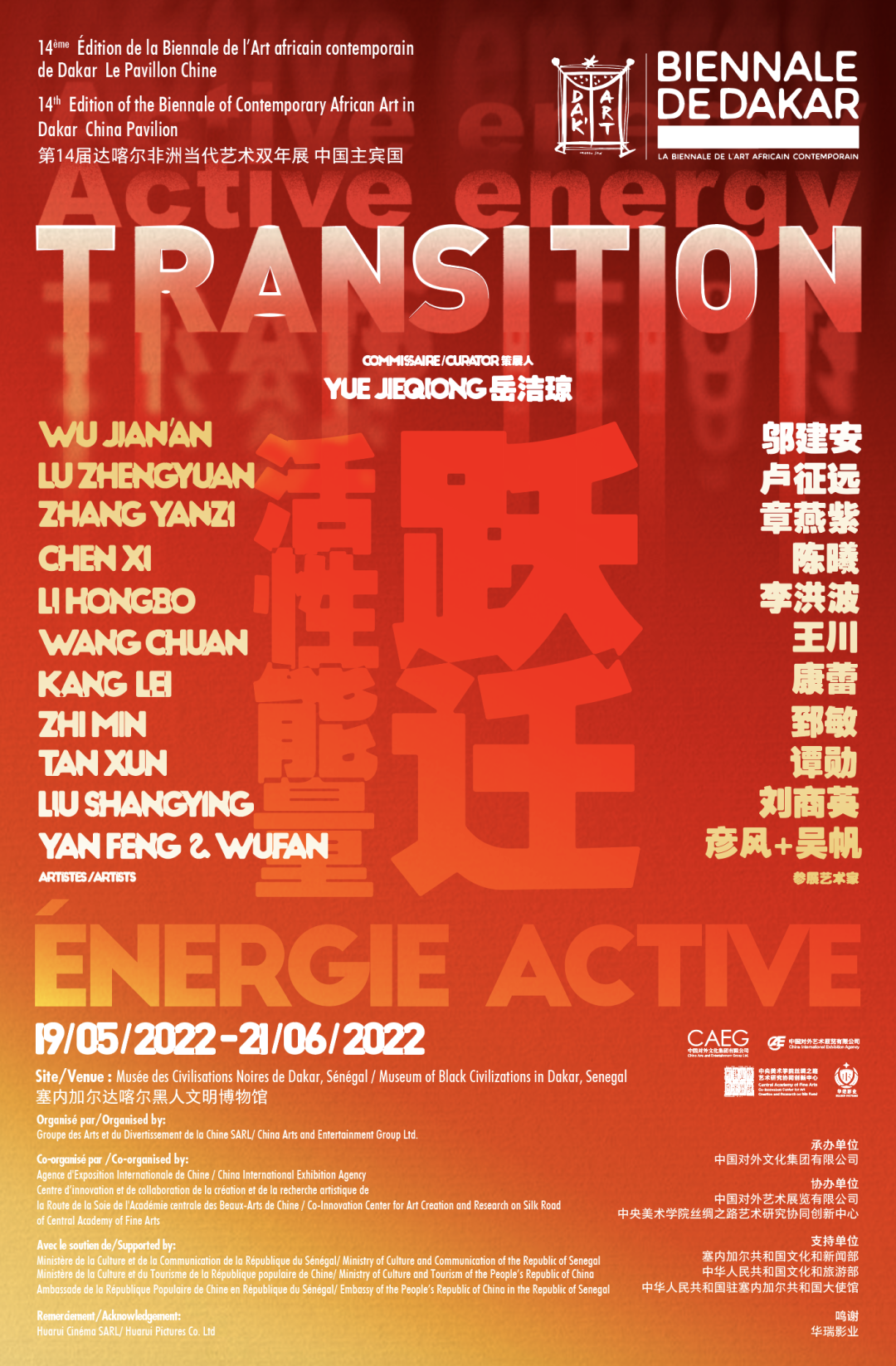 中國主賓國展覽策展人岳潔瓊以“躍遷/活性能量”為策展理念,遴選了中國藝術(shù)家鄔建安、劉商英、李洪波、郅敏、譚勛、陳曦、章燕紫、王川、盧征遠(yuǎn)、康蕾、彥風(fēng)和吳帆的24件(套)作品,包含繪畫、雕塑、裝置和影像等多種藝術(shù)門類,旨在呈現(xiàn)中國當(dāng)代藝術(shù)生態(tài)在全球性與本土化語境下的探索,表達(dá)“和而不同”“共生共榮”的文化愿景。中國和非洲國家的當(dāng)代藝術(shù)作品在達(dá)喀爾雙年展上交相輝映,呈現(xiàn)出一幅世界文化多樣性和不同文明交流互鑒的優(yōu)美畫卷。
