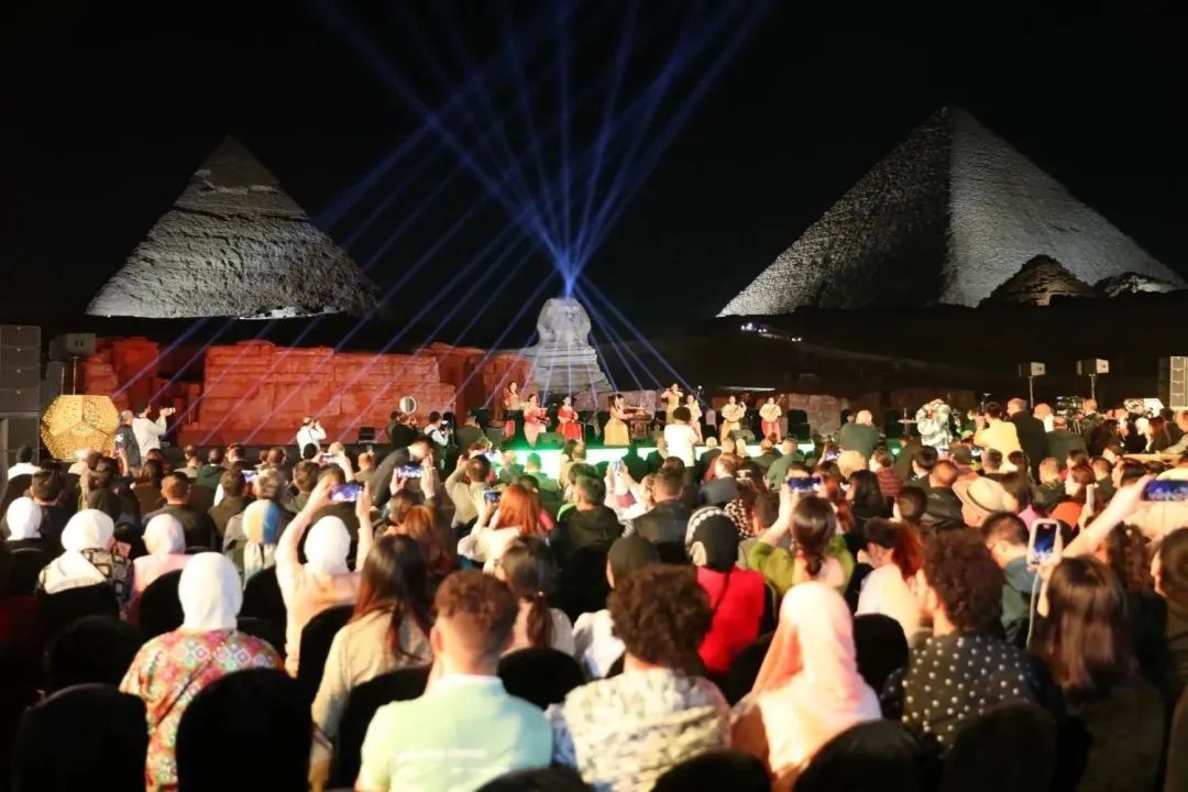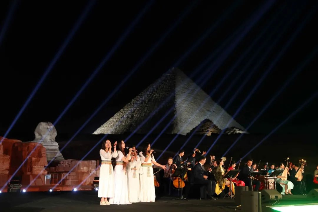 當地時間4月3日晚,由中國文化和旅游部、埃及旅游和文物部、中國駐埃及大使館共同主辦的中國-埃及民族音樂會在埃及開羅吉薩金字塔古跡區舉辦。中國文化和旅游部部長胡和平、埃及旅游和文物部部長伊薩、埃及文化部部長蓋拉尼、中國駐埃及大使廖力強,以及中埃各界人士600余人出席活動。