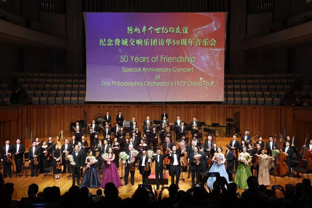 11月10日晚,“跨越半個世紀的友誼”紀念費城交響樂團訪華50周年音樂會,在北京中國國家大劇院舉行。本次音樂會由文化和旅游部主辦,中國對外文化交流協會、中國人民對外友好協會、美國國務院支持,中國對外文化集團有限公司承辦,費城交響樂團(以下部分簡稱費交)、中國交響樂團、美國亞裔表演藝術中心共同演出。