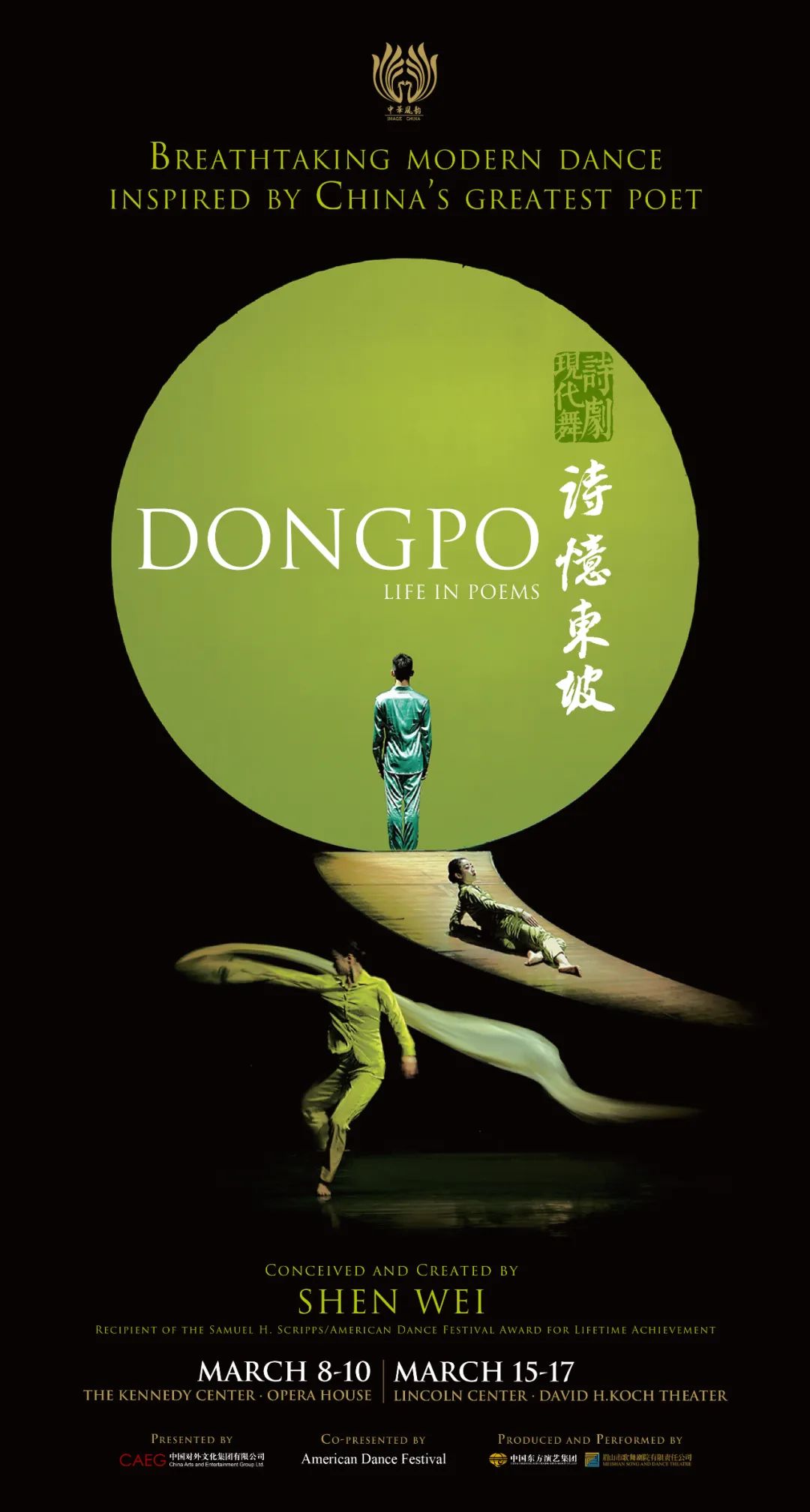 在中國對外文化集團(tuán)有限公司“中華風(fēng)韻”品牌推動下,現(xiàn)代舞詩劇《詩憶東坡》即將于今年3月8日至17日期間,在美國華盛頓肯尼迪中心歌劇院和紐約林肯中心大衛(wèi)·寇克劇院演出8場。該劇由國際著名編導(dǎo)、舞蹈家、畫家與視覺藝術(shù)家沈偉領(lǐng)銜創(chuàng)作,中國東方演藝集團(tuán)有限公司聯(lián)合眉山市歌舞劇院有限責(zé)任公司傾力打造,是一部立足中國傳統(tǒng)文化、對標(biāo)國際市場和國際審美表達(dá)、大膽探索中外藝術(shù)融合的創(chuàng)新之作。