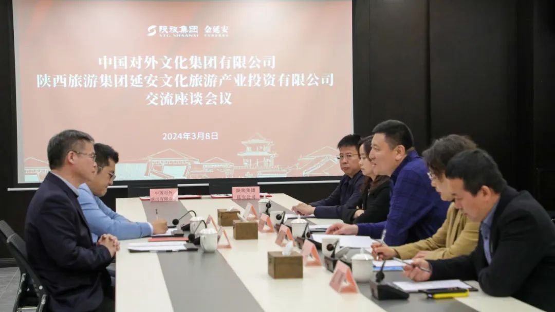 3月8日,中國對外文化集團有限公司與陜西旅游集團延安文化旅游產業投資有限公司開展交流座談,會上中國文化集團有限公司所屬中國對外演出有限公司與陜旅集團延安公司達成廣泛共識。中國對外文化集團有限公司董事、常務副總經理郭利群,陜旅集團延安公司黨委書記、董事長國小強及班子成員,中國對外演出有限公司等領導參加相關活動。