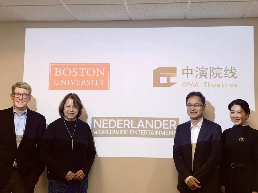 簽約儀式上,在中國對外文化集團有限公司董事長李金生與波士頓大學大都會學院藝術管理專業學術事務副院長盧·奇庫舍夫、國際項目主任凱瑟琳·鄧克利、藝術管理專業主任道格拉斯·德納塔爾、倪德倫環球娛樂公司總裁羅伯特·倪德倫共同見證下,中國對外文化集團職工董事、中演演出院線發展有限責任公司副總經理周青青與波士頓大學大都會學院院長坦尼婭·茲拉特瓦簽署合作協議。