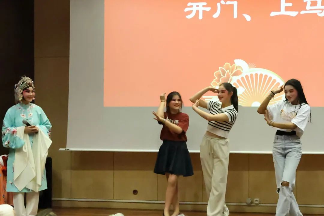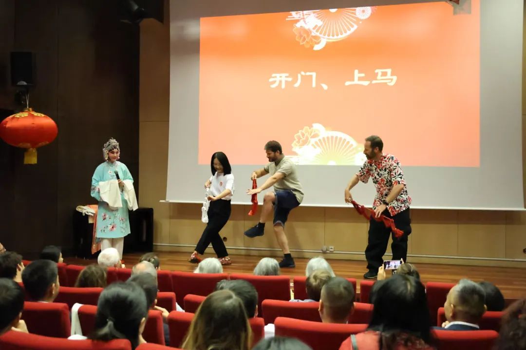 活動(dòng)現(xiàn)場(chǎng),吳素真以陳派經(jīng)典劇目《梵王宮》為例,不僅用身段展示、唱腔示范的方式生動(dòng)講解中國(guó)戲曲的概況、特性、四功五法等專(zhuān)業(yè)內(nèi)容,還邀請(qǐng)法國(guó)觀眾現(xiàn)場(chǎng)學(xué)戲,與觀眾親切互動(dòng)。