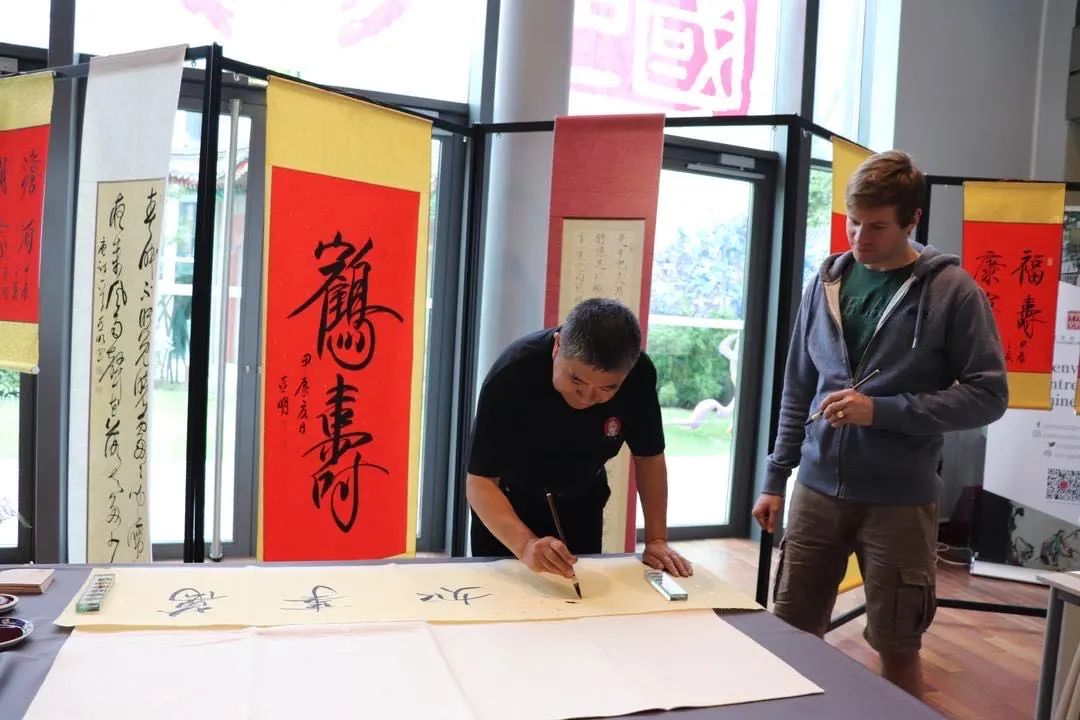 在書(shū)法展示區(qū),中國(guó)書(shū)法家協(xié)會(huì)會(huì)員、著名書(shū)法家李健為現(xiàn)場(chǎng)觀眾展示宋朝時(shí)期創(chuàng)立的瘦金體書(shū)法。一幅幅氣韻生動(dòng)、別具一格的書(shū)法作品令觀眾大飽眼福,不少觀眾還現(xiàn)場(chǎng)學(xué)習(xí)書(shū)寫(xiě),親身體驗(yàn)中國(guó)書(shū)法的藝術(shù)魅力。