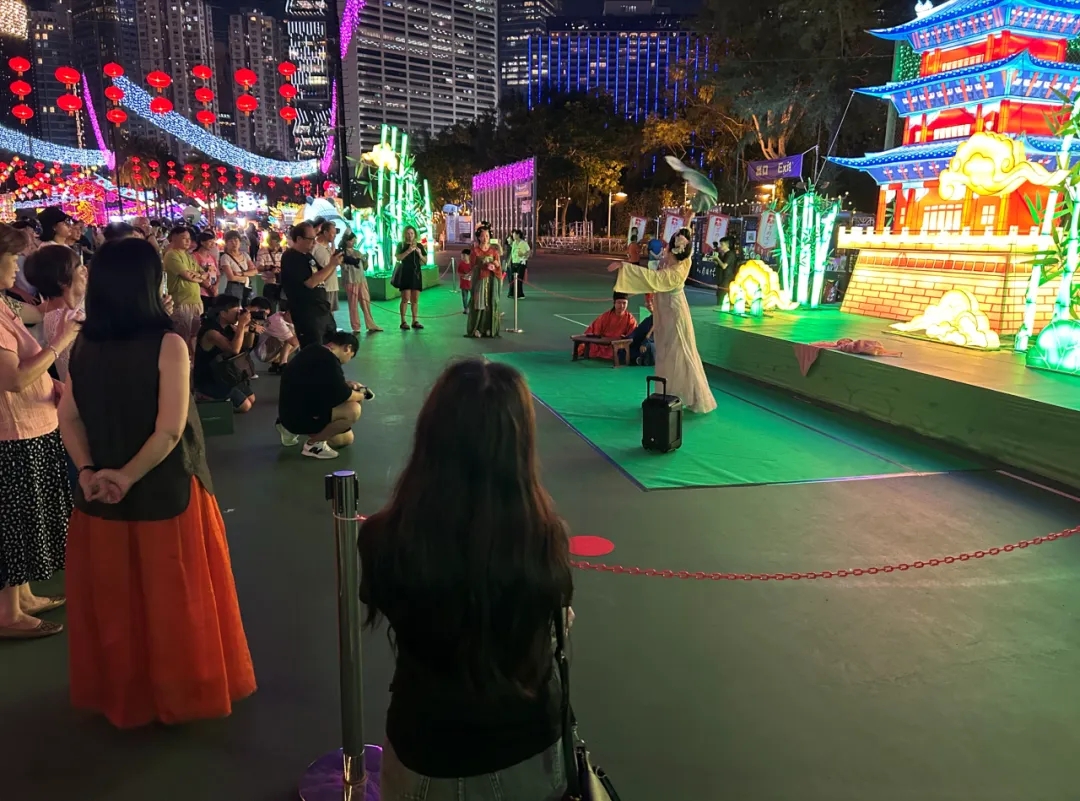 在主題彩燈組的映襯下,漢服快閃節(jié)目“名仕中秋”、“拜月儀式”等形式各異的國(guó)潮文化表演也同期上演,大大豐富了民眾的賞燈游園互動(dòng)體驗(yàn)。