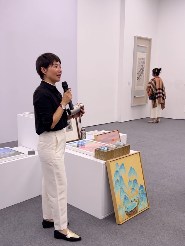 值得一提的是,本次展覽活動特加入了公益環(huán)節(jié)。金羽翼公益基金會也特選送了多幅孤獨癥青少年的「詠春」主題畫作,在現(xiàn)場展出、與大師作品形成對話。同時,三位孤獨癥青少年來到展覽現(xiàn)場,他們臨摹的大師作品栩栩如生。金羽翼基金會理事長張軍茹也特別表達(dá)了,希望在公益領(lǐng)域能以文化藝術(shù)為觸角,讓更多的有特殊需求的青少年學(xué)有多長、走向更廣闊的舞臺,同時藉助藝術(shù)大師的精湛造詣和影響力,促進(jìn)全社會對這一群體的關(guān)注與了解。記者在現(xiàn)場還看到,由京鹿鹿品牌方結(jié)合孤獨癥孩子的畫作制作而成的鈦杯和鈦保溫杯格外引人關(guān)注,為有繪畫天賦的孤獨癥孩子打開了一個新的發(fā)展方向,很有意義。